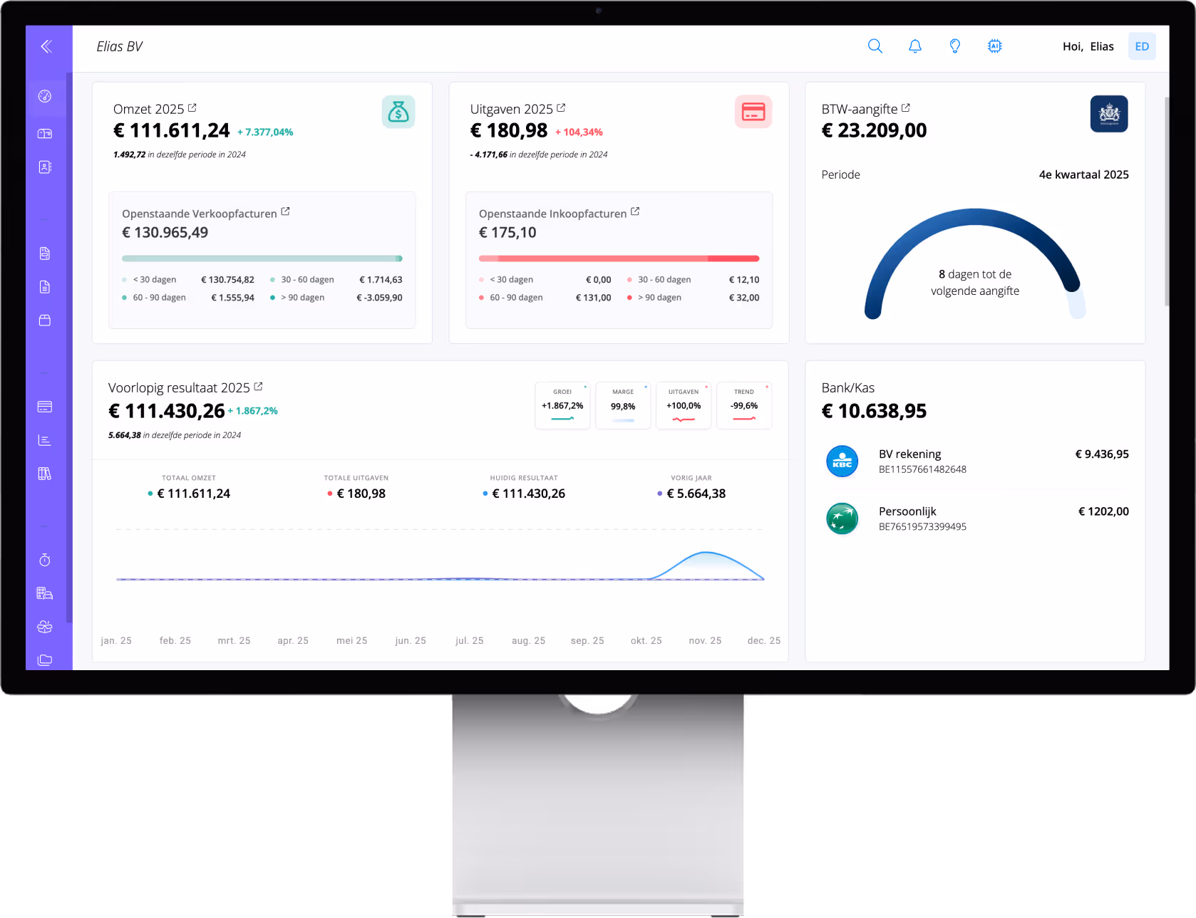 Met een klik wettelijk in orde en verzonden via Peppol. Sneller betaald. Eenvoudig beschikbaar voor je financieel adviseur.
